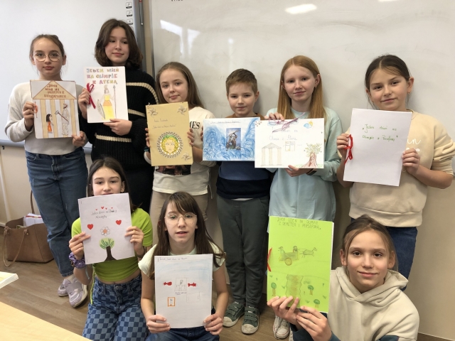 Uczniowie klasy V zakończyli cykl lekcji z języka polskiego poświęcony mitologii greckiej. Na podsumowanie zajęć wykonaliśmy kilka zadań, które wymagały umiejętności współdziałania w zespole, kreatywności, zdolności pisarskich, staranności wykonanych prac, ale również autoprezentacji. Zespoły wykazały się dużą wiedzą z zakresu mitologii greckiej, czego efektem są ciekawe prace.