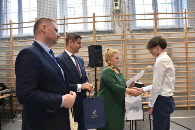 Miło nam poinformować o kolejnym sukcesie Jakuba Karwackiego, ucznia klasy 8b. Kuba zdobył I miejsce w Powiatowym Literackim Konkursie Obcojęzycznym Pod Honorowym Patronatem Starosty Będzińskiego organizowanym przez II Liceum Ogólnokształcące im. Stanisława Wyspiańskiego w Będzinie. Kuba napisał opowiadanie inspirowane ulubioną piosenką, które urzekło jury konkursu. Warto podkreślić, że w konkursie wzięło udział 80 uczniów a więc konkurencja była ogromna. Rok temu w tym samym konkursie Kuba również zajął I miejsce. Gratulujemy i życzymy kolejnych sukcesów Kubie.