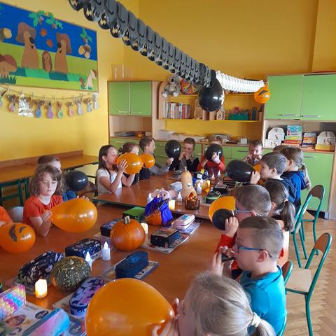 Nawiązując do halloweenowej tradycji i pomarańczowych barw pięknej polskiej złotej jesieni, uczniowie wzięli udział w konkursie na najbardziej chemiczną wybuchową dynię.Zadanie polegało na przeprowadzeniu prostego doświadczenia chemicznego, tym razem nie w kolbie, ani probówce, ale w jesiennej dyni. Dodatkowo – dynia miała być „chemicznie” udekorowana.