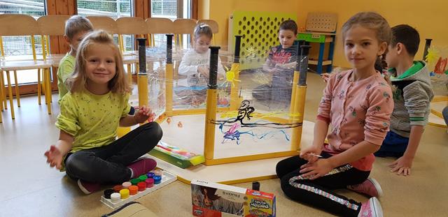 Dzieci wzięły też udział w quizie, wysłuchały specjalnie na tę okazję przygotowanego opowiadania, stworzyły wspólną pracę plastyczną, a na koniec każdy otrzymał odznakę ,,Super Przedszkolaka"