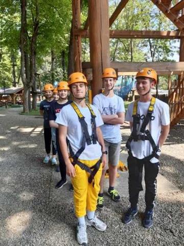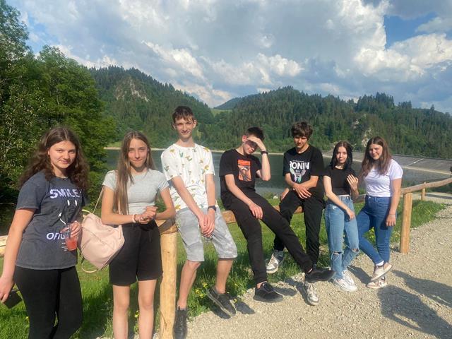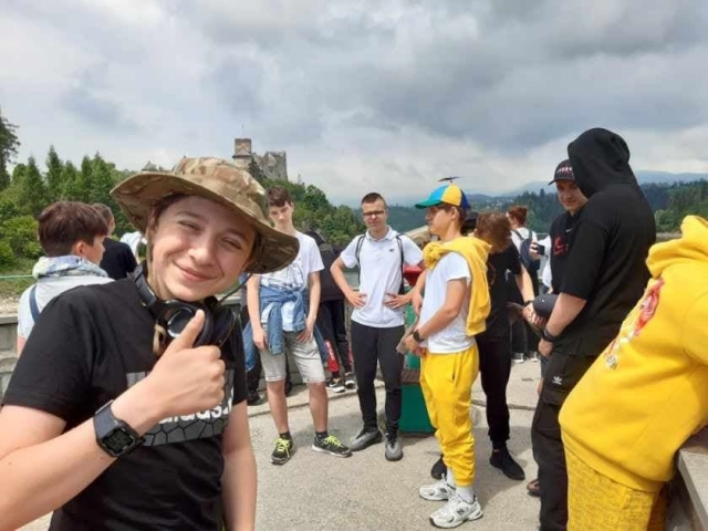 Po trudach całorocznej nauki i stresach związanych z egzaminami, klasy ósme postawiły na relaks i aktywny wypoczynek i udały się na długo wyczekiwaną dwudniową wycieczkę w Pieniny. Pieniny to jedne z najpiękniejszych i cieszących się największą popularnością wśród turystów pasm górskich w Polsce. Po dotarciu na miejsce zaczęliśmy od spaceru po zaporze wodnej na zbiorniku czorsztyńskim. Jest to punkt widokowy, którego nie mogło zabraknąć na mapie naszej wycieczki. Z zapory podziwialiśmy widok na zamek w Niedzicy i ruiny zamku w Czorsztynie oraz okoliczne krajobrazy. Od 2011 r. znajduje się tu malowidło 3D ”Moc Żywiołów” przedstawiające wnętrze elektrowni zalewanej wodospadami.Następnie postawiliśmy na konkretną aktywność, adrenalinę i po prostu dobrą zabawę. Udaliśmy się do parku linowego w Krościenku. Park linowy to bardzo popularna forma aktywnego spędzania czasu wolnego. To przygoda na świeżym powietrzu, dzięki której można przetestować swoją fizyczną i psychiczną siłę, wytrzymałość, zwinność i równowagę. Wędrując trasami linowymi uczniowie wspinali się od drzewa do drzewa po ruchomych kładkach, wiszących siatkach a nawet mogli przejechać beczką po linach. Swoich sił w tym zakresie nie omieszkały też spróbować opiekunki tej wycieczki