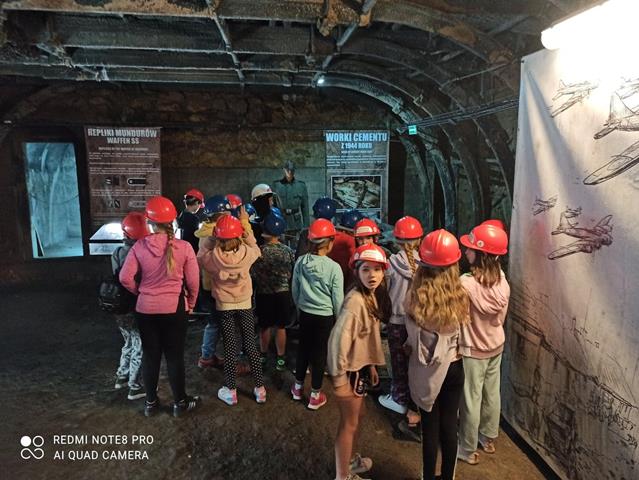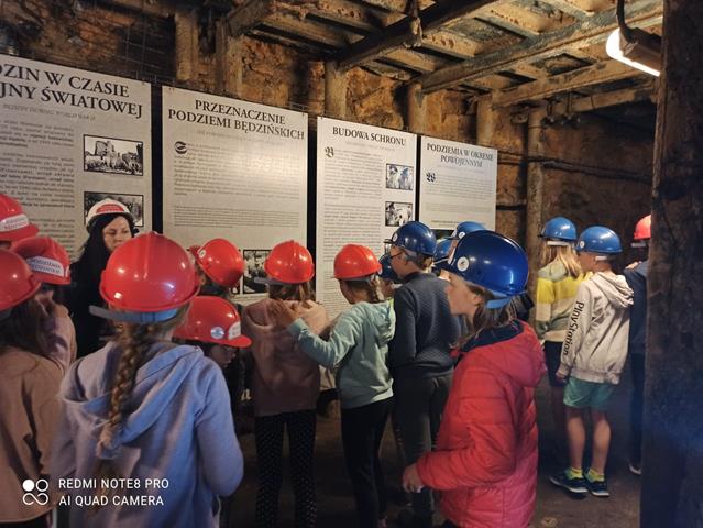 Piątkowa lekcja terenowa z historii poświęcona była dziejom II wojny światowej, ze szczególnym naciskiem na to co działo się w naszej lokalnej ojczyźnie. Wybraliśmy się do pobliskiego Będzina, gdzie Pani Przewodnik opowiedziała nam o pierwszych dniach wojny i przybliżyła będzińskie wydarzenia z września 1939r. Następnie zwiedzaliśmy podziemia będzińskie, które były wydrążonym przez nazistów schronem przeciwlotniczym. Wystawy w komorach tuneli pełne były znalezionych podczas rekonstrukcji elementów uzbrojenia, broni, materiałów budowlanych, narzędzi i innych świadków historii. Dodatkową atrakcją były formacje skalne, które mogliśmy podziwiać w tunelach. Było bardzo zimno, ale bardzo ciekawie